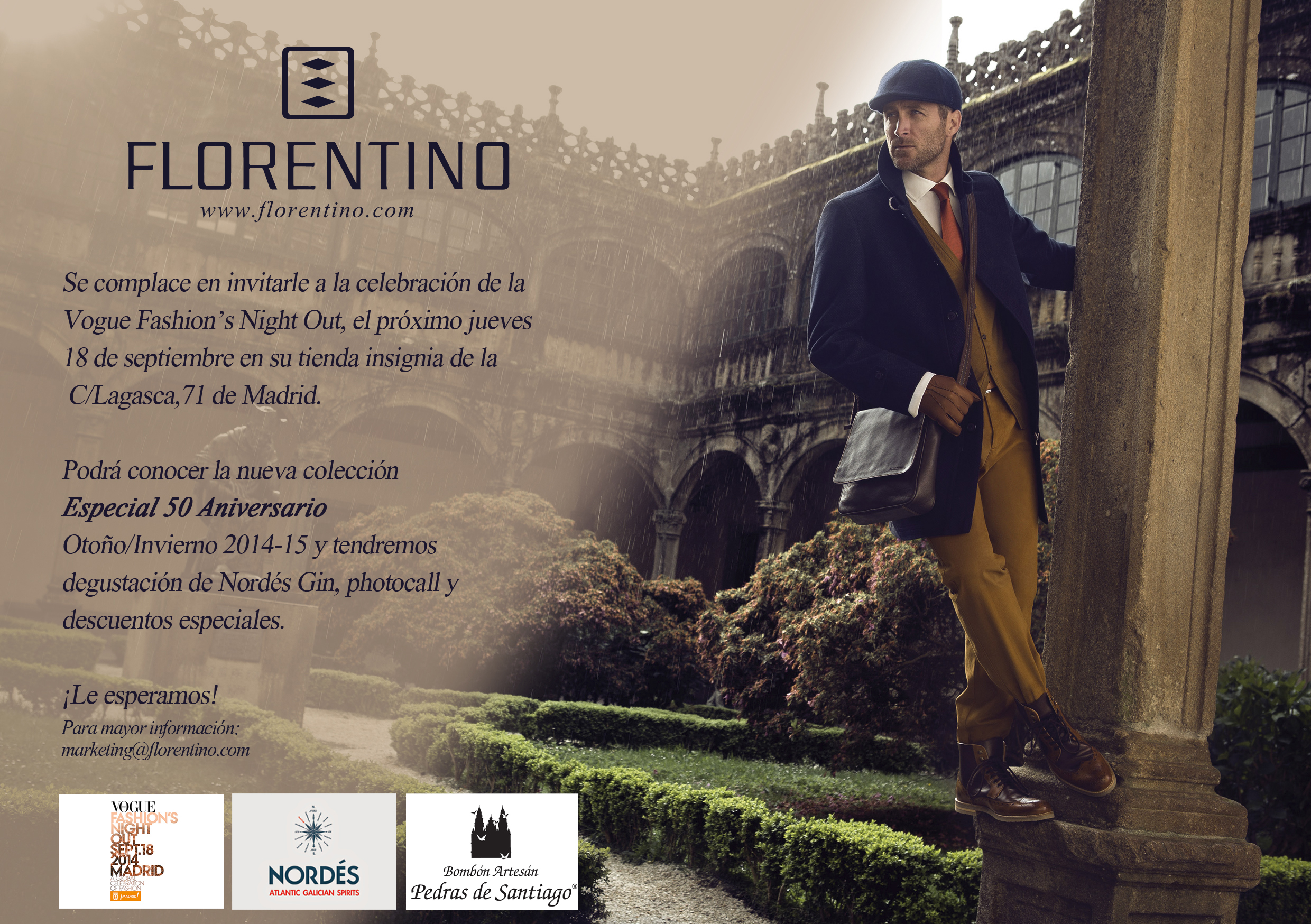 La tienda insignia de FLORENTINO en Madrid (Lagasca, 71) participará mañana, jueves 18 de septiembre, en la sexta edición de la VOGUE Fashion’s Night Out que se celebra en la capital española. En esta ocasión, la marca de moda, puesta ...